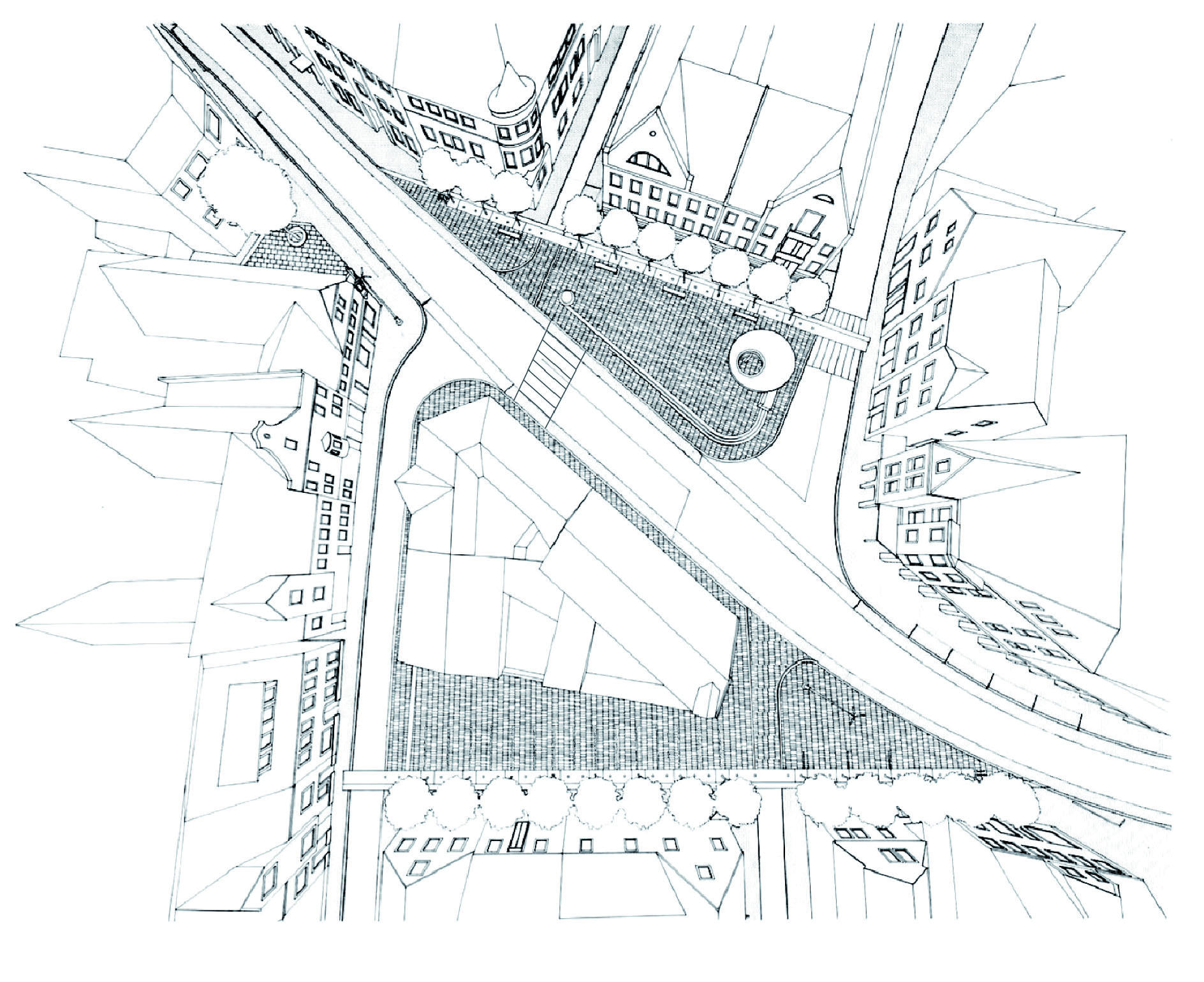 Der Oswaldplatz in Neuburg an der Donau liegt in der unteren Altstadt innerhalb der historischen Schanzanlage. Er bildet den Auftakt zum Stadtzentrum und dient gleichzeitig als Verkehrsknotenpunkt. Klärende stadträumliche Eingriffe aktivieren den öffentlichen Raum und führen zu einer Aufwertung der Freiräume als Entwicklungsimpulse für den Einzelhandel. Durch Reduzierung der Straßenquerschnitte auf ein notwendiges Minimum und durch die Neuordnung des ruhenden Verkehrs kann die Qualität für Fußgänger und Fahrradfahrer verbessert und können mehrere kleine Plätze im gesamten Planungsgebiet ausformuliert und gestaltet werden. Das Gesamtkonzept von Linie und Punkt findet sich auch im Grün- und Lichtkonzept wieder. In den Boden eingelassene Leuchten definieren auch bei Nacht die Platzgrenzen, die Arkaden in der Münchnerstraße werden mit einem Lichtband versehen und wichtige Kreuzungen mit Fluterstelen besetzt.